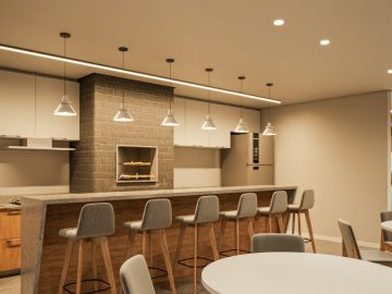 Ambiente social integrado: sala de estar e cozinha planejados para maior convivência